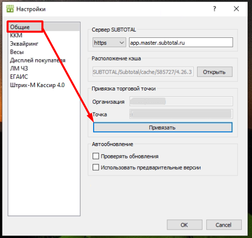 - Статус запуска УТМ и кассового приложения SUBTOTAL